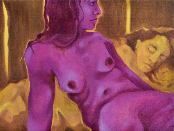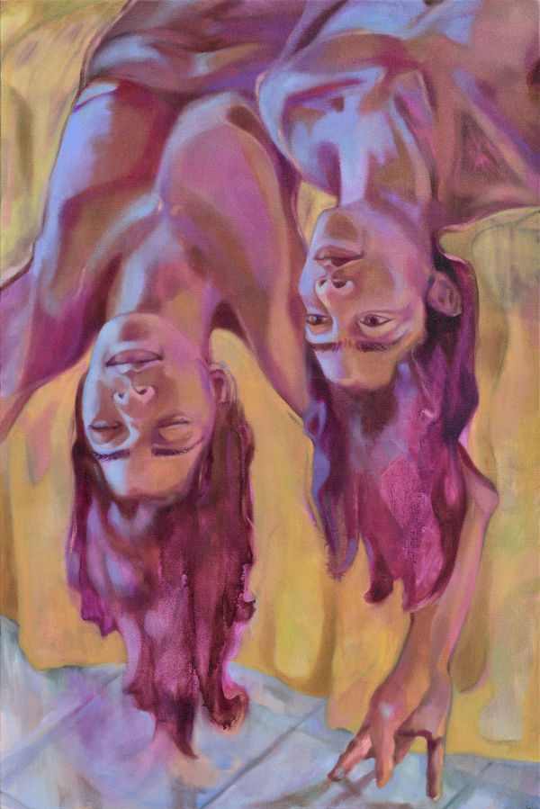 I'm an artist based in Goa, primarily working with the mediums of painting and drawing. My work stems from an autobiographical lens on the female embodiment of agency. I draw most of my imagery from the everyday, often followed by a mythologising of the self. The settings and characters in my narratives are evocative of the Indian landscape, but are also pushed into the terrains of a beyond-human/ non-human environment. Using a theatrical visual language, they subvert patriarchal tropes by enacting an otherness associated with the female experience. My inquiry into figurative painting allows me to embrace intimate ideas such as that of desire, solitude, idleness and care while acknowledging the body’s vulnerability as well as its power. In my recent paintings, there has been a conscious and a gradual shift towards abstraction, where the figures are more embedded in the contexts that they occupy, seemingly appearing from and disappearing into each other and their surroundings. My engagement with drawing has largely informed this shift. I find the directness of the medium to be extremely intuitive and even primal to a certain extent. Moreover, I enjoy the way that the line unifies all- bodies, trees, grounds, horizons- into a quiet metamorphosis that is in constant flux. Consequently, natural elements are finding their way into the corporeal gatherings I render. They are now increasingly moving away from domestic settings, embracing the wild yet nurturing aspects of our environment to explore a dynamism that melts into the entire composition.